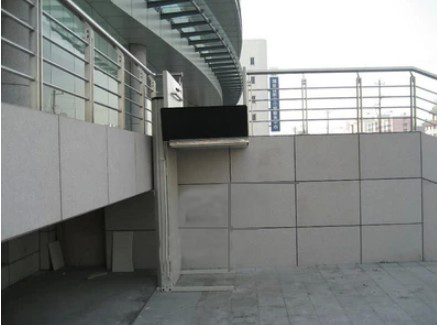 無障礙殘疾人升降機,主要是由導軌和升降平臺板組成的,類似一個簡易的小電梯。導軌是鑲嵌在通道出入口的墻壁上的,隨著樓梯的坡度向下延伸,一直到地道內部。而升降平臺在不使用時可以折疊靠著墻壁放置,這樣不會占用通道出入口處的空間。乘坐輪椅的殘疾人在使用時,輪椅四個輪子可以被固定在臺板上,按動開關后就可以控制升降平臺進入地下通道,安全方便。