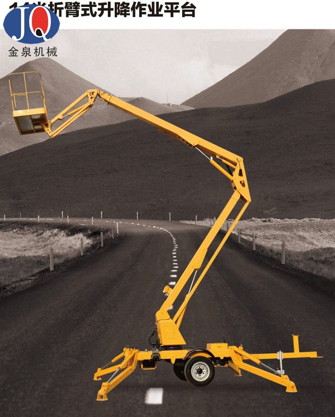 汽車牽引式折臂升降平臺(tái)廣泛應(yīng)用于市政、電力、路政、廣告、通訊、攝影、園林、交通、碼