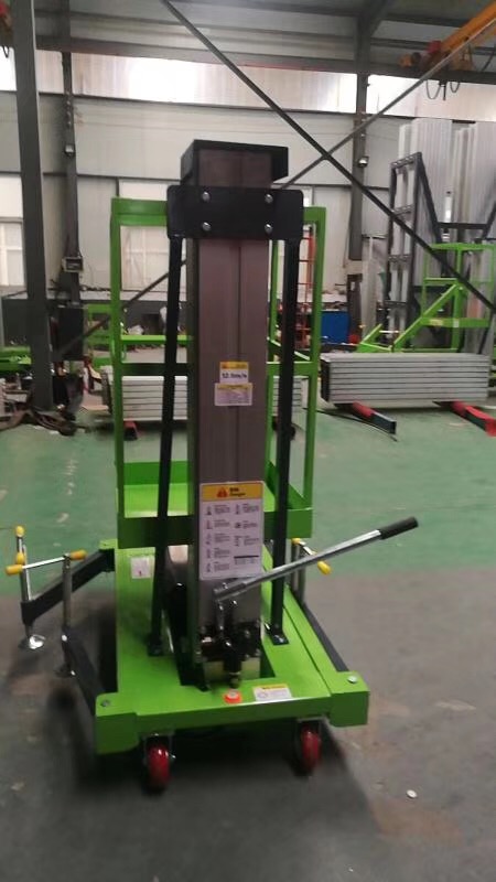 手動鋁合金升降機不需任何動力或電源,可在野外或流動量大的區域進行高空作業,是無電源場所的必備之品。