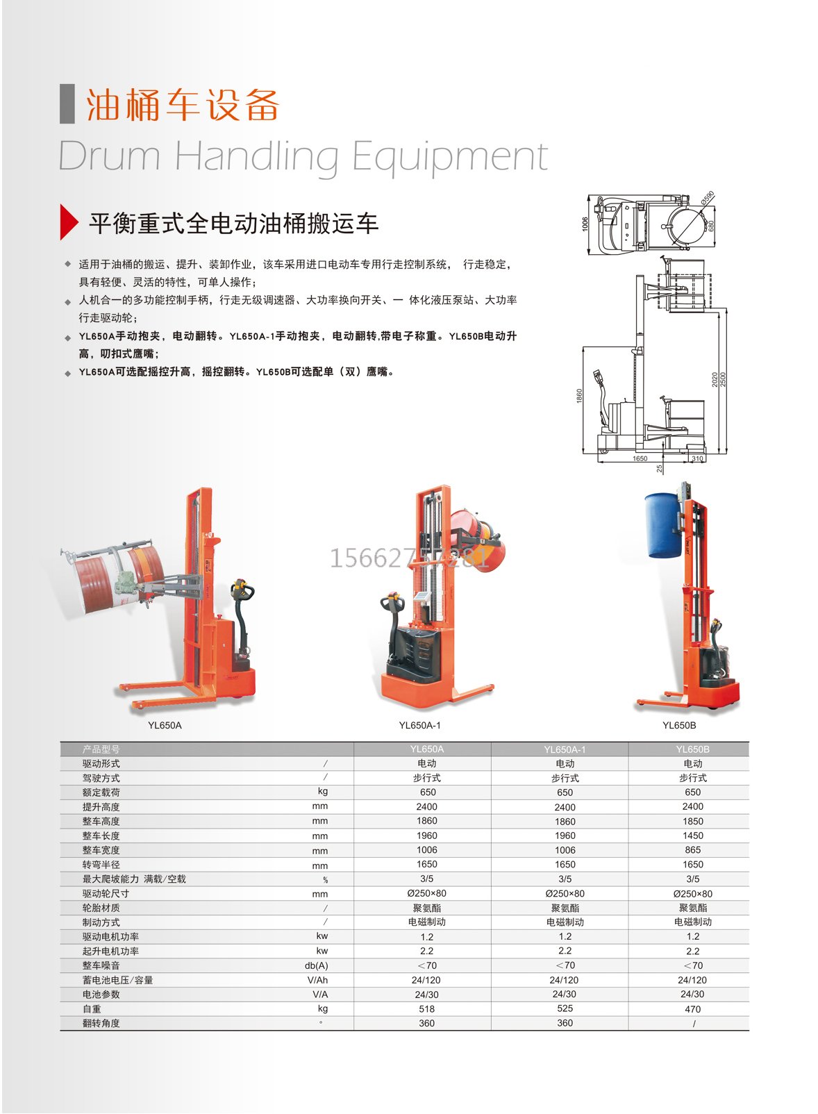 步行全電動油桶翻轉(zhuǎn)車YL650