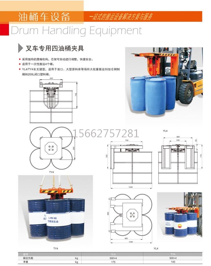 3.YL4長直腿型,適用于港口、大型原料庫等場所大批量搬運鋼制油桶和塑料油桶及纖維桶