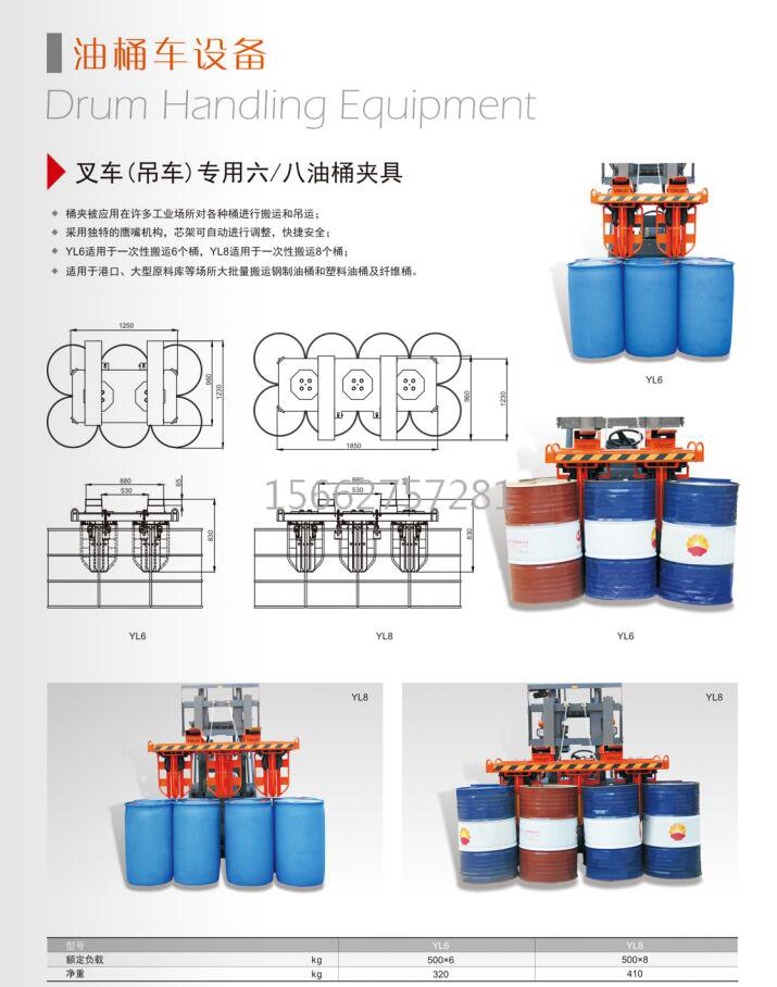 4.適用于港口、大型原料庫等場所大批量搬運鋼制油桶和塑料油桶及纖維桶