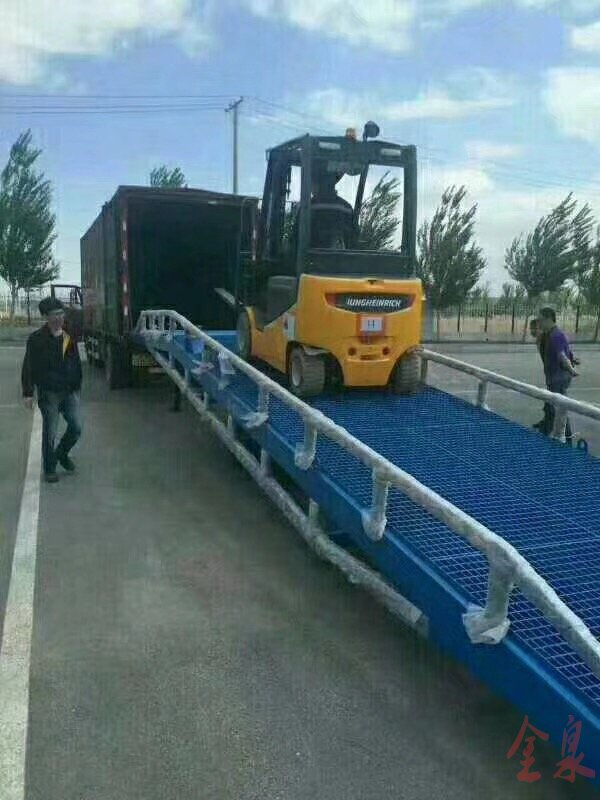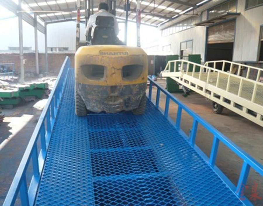 移動式裝卸登車橋用于現(xiàn)場無裝卸貨平臺或需要流動裝卸貨物的場所。如果物流現(xiàn)場沒有裝卸貨平臺,作為補救措施,移動式登車橋是非常適用的方案之一,移動式登車橋相當于一個移動的鋼結(jié)斜坡,叉車同樣能直接駛?cè)肟ㄜ囓噹麅?nèi)部進行批量裝卸作業(yè)。只需單人操作,不需動力電源,即可實現(xiàn)貨物的安全快速裝卸。