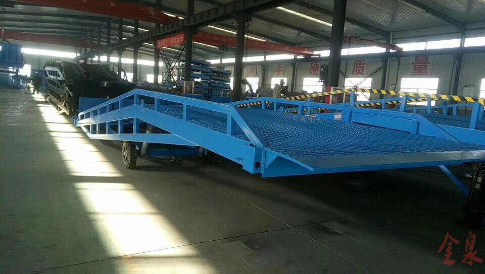 液壓移動登車橋是與叉車配合使用的貨物裝卸輔助設備,可根據汽車車廂的高低調節高度,叉車可以直接通過本設備駛入車廂內